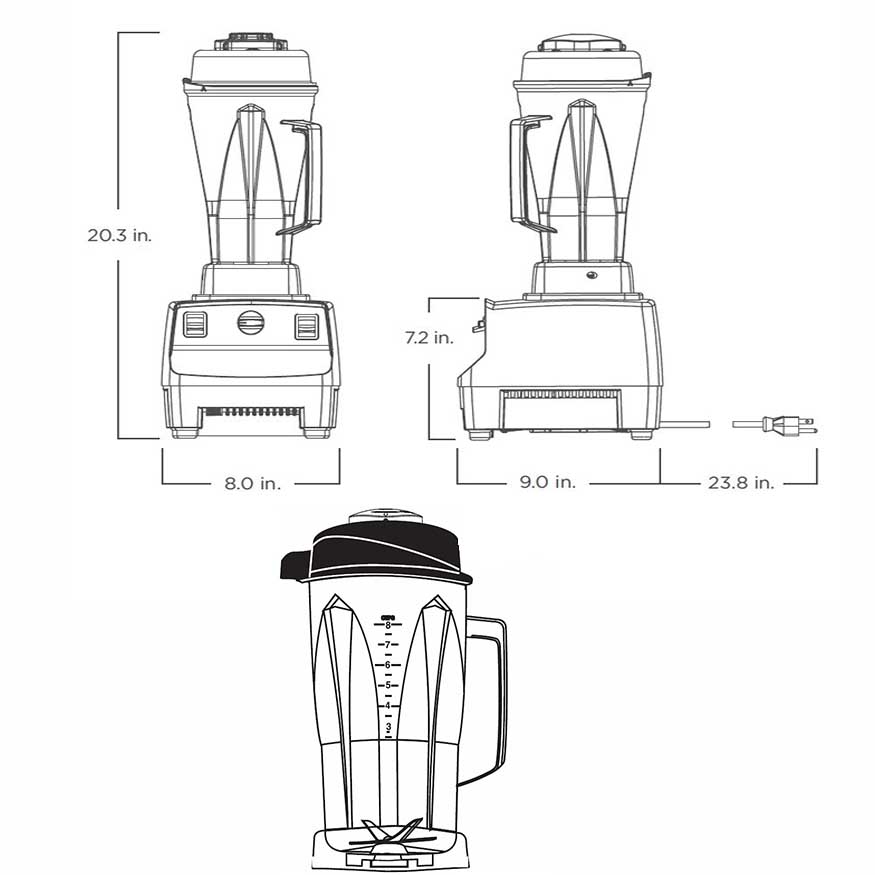 Un récipient durable 64 oz à fort impact est livré avec un bouchon de couvercle amovible, ce qui rend facile d'ajouter des ingrédients tout en mélangeant.