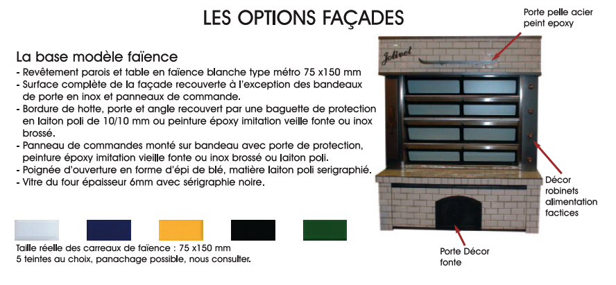 Habillage en tôles laquées en standard, inox en option, façade en inox (sauf pour les façades briquetées et faïence).