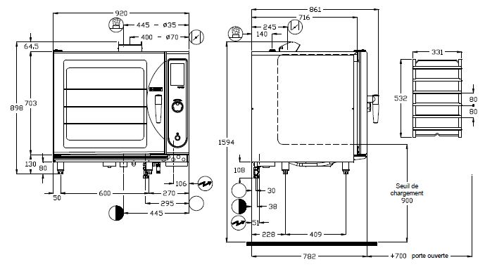 | Taille (longueur, profondeur, hauteur) | 920x898x861 mm |