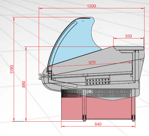 - les plateaux d'exposition sont arrondis avec un système de récupération d'écoulement raccordé par des tubes de sortie.