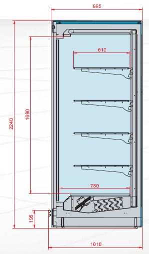 - Pour un voile constant d’air des ventilateurs appropriés garantissent une excellente ré-circulation forcée. Ventilateurs à consommation basse en option