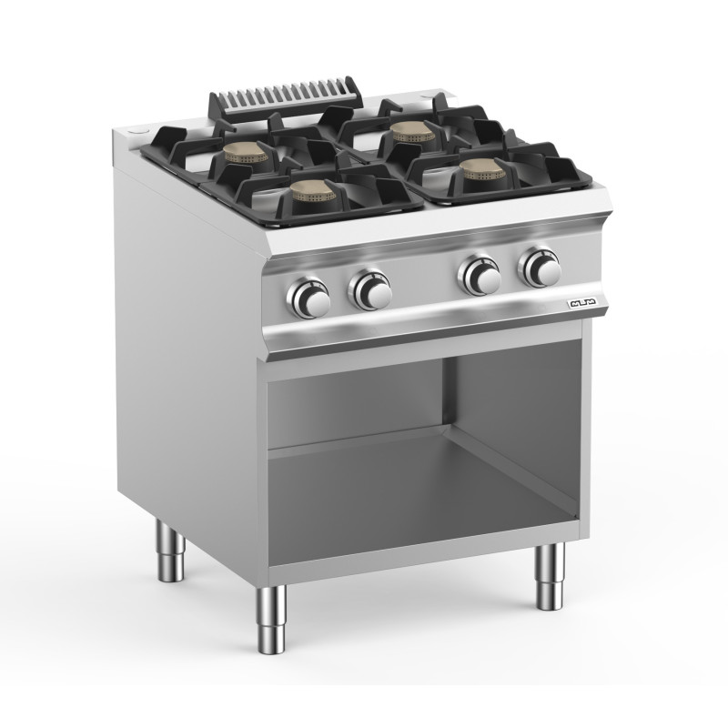 Les brûleurs Flex Burner sont équipés de chapeaux en laiton avec flamme auto-stabilisant, pour la cuisson en toute sécurité et pour un entretien plus facile. Chaque brûleur a une plage de puissance qui peut être modulée par un minimum de 1,5 kW à un maximum de 5,5 / 7 kW, pour obtenir une flexibilité maximale. Le brûleur pilote a basse consommation est protégée à l'intérieur du brûleur primaire. La disposition des brûleurs permet l'utilisation de pots jusqu'à 40 cm de diamètre. Les grilles de support casseroles peuvent être lavées au lave vaisselle.