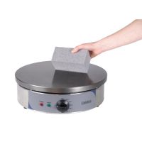 Permet d'enlever la croûte de cuisson sur les plaques usinées des crêpières.