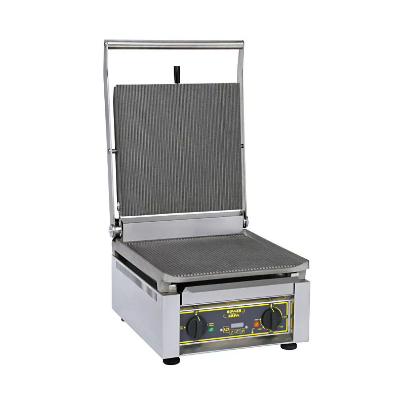 Appareil à panini série Standard/Spéciale/Chrome: Cet appareil est fabriqué en acier inoxydable AISI 304 résistant à la corrosion, mené d'une plaque de cuisson en fonte traitée ou en version 'plaque au CHROME', un bac collecteur de graisses amovible et bord anti-éclaboussures, un thermostat réglable en continu jusqu'à 300 °C maximum, avec voyant lumineux, et une fréquence de 50 Hz.