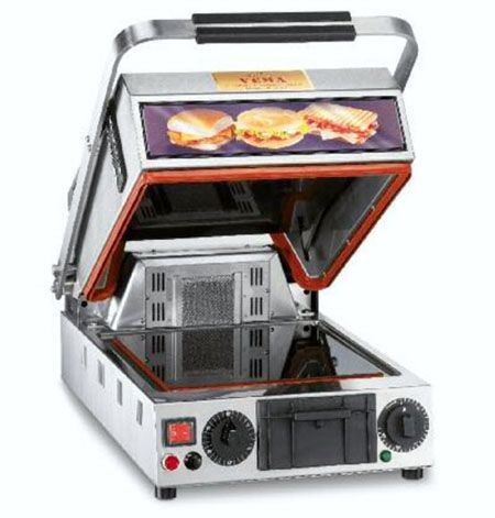Optez pour l'appareil à panini 2 en 1 grill et four de la marque VEMA, cet appareil est caractérisé par ses deux types de plaques rainurées ou lisses, un temps de cuisson très rapide une carrosserie en acier inoxydable. C'est une nouvelle marque de machine pour cuire tout type d'alimentaire, tels que les sandwichs, la viande, les poissons, les légumes, les pizzas ainsi que les croissants. Grâce à l'échauffement rapide de ses plaques vitrocéramiques, vous pouvez utiliser la machine en quelques minutes juste après son départ. Cet appareil de chauffage particulier avec les différentes positions des plaques de cuisson en céramique, simplement ajustée en déplaçant la poignée, cette machine peut être utilisée comme grill ou four ventilé. Cet appareil est très polyvalent il est donc approprié pour les bars, restaurants, fast-foods, pizzerias, etc.. Profitez!