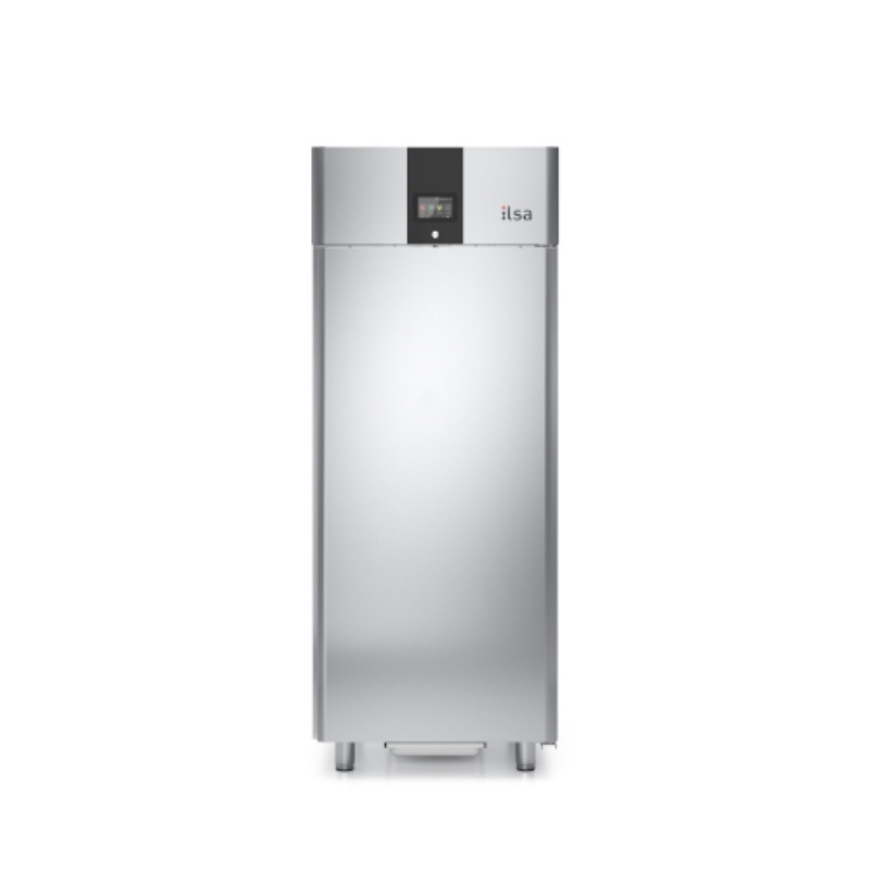 Structure monobloc en acier inox ; finition extérieure scotch-brite satinée ; épaisseur d'isolation de 75 mm avec mousse de polyuréthane à haute densité (40 kg/m3) ; circulation d'air interne indirecte et uniforme ; système d'humidification et de déshumidification automatique à contrôle uniforme ; contrôle électronique par écran LCD avec fonctions avancées ; pieds réglables en acier inox h. 120-150 ; portes à fermeture automatique avec arrêt à 90° ; fond intérieur moulé avec trou de lavage ; dégivrage automatique ; évaporation automatique de l'eau de condensation ; sans CFC ni HCFC ; éclairage intérieur ; serrure de série.