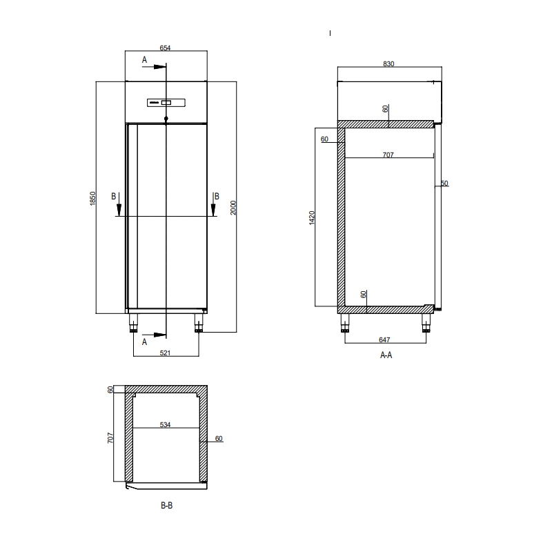 - Dimensions (L x P x H) : 654 x 830 x 2000 mm