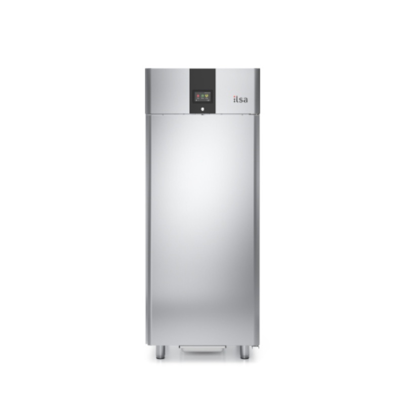 Structure monocoque en acier inox ; finition extérieure scotch-brite satinée ; épaisseur d'isolation de 75 mm avec mousse de polyuréthane à haute densité (40 kg/m3) ; circulation d'air interne indirecte et uniforme ; système d'humidification et de déshumidification automatique à contrôle uniforme ; contrôle électronique par écran LCD avec fonctions avancées ; pieds réglables en acier inox h. 120-150 ; portes à fermeture automatique avec arrêt à 90° ; fond intérieur moulé avec trou de lavage ; dégivrage automatique ; évaporation automatique de l'eau de condensation ; sans CFC ni HCFC ; éclairage intérieur ; serrure de série.