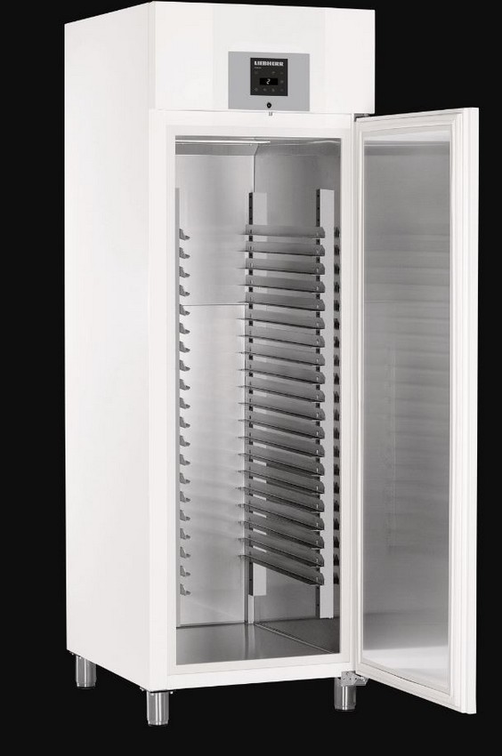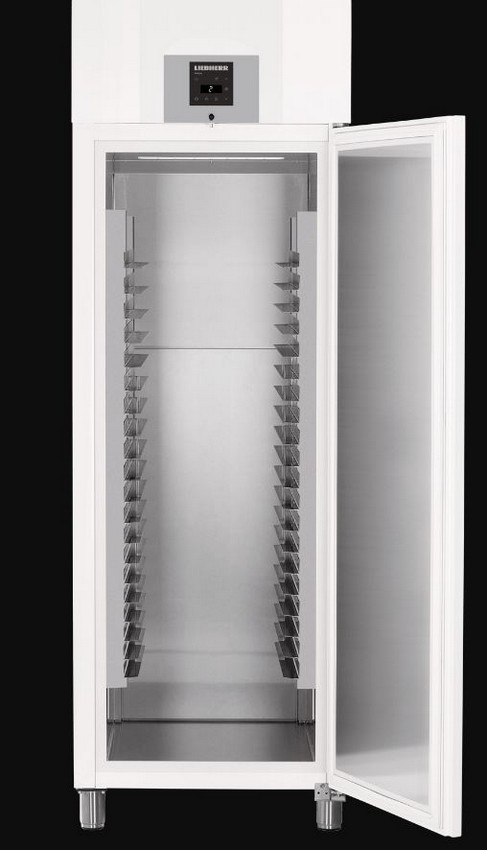 Le modèle Liebherr BKPv 6520 est un réfrigérateur de 600 litres, avec intérieur en acier nickel chrome de 40×60 cm selon la norme de boulangerie. La plage de température est à réglage graduel digital allant de -5°C à +15°C et l’hygrométrie peut se régler au choix sur haut, moyen ou bas.
