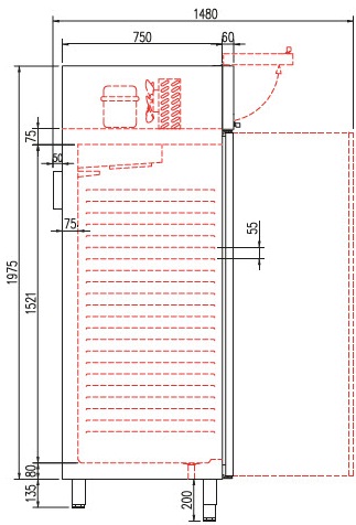 - Pieds inox réglables de 135 à 200mm