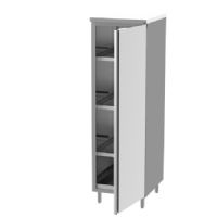 Typology : avec portes à charnières Dimensions (mm) : 600 x 600 x 1700 mm En acier inox AISI 304 Avec panneau arrière Avec portes à charnières