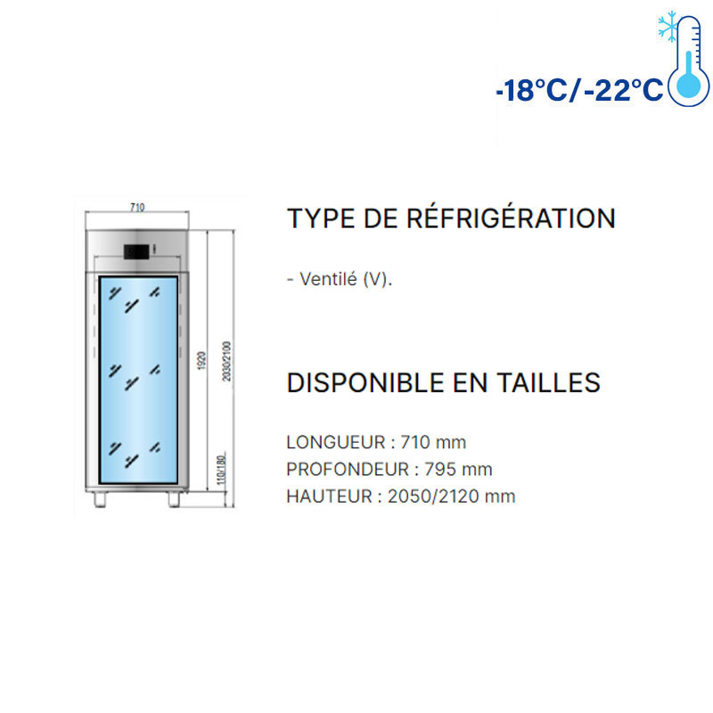 - Température de fonctionnement : BT -18°C / -22°C