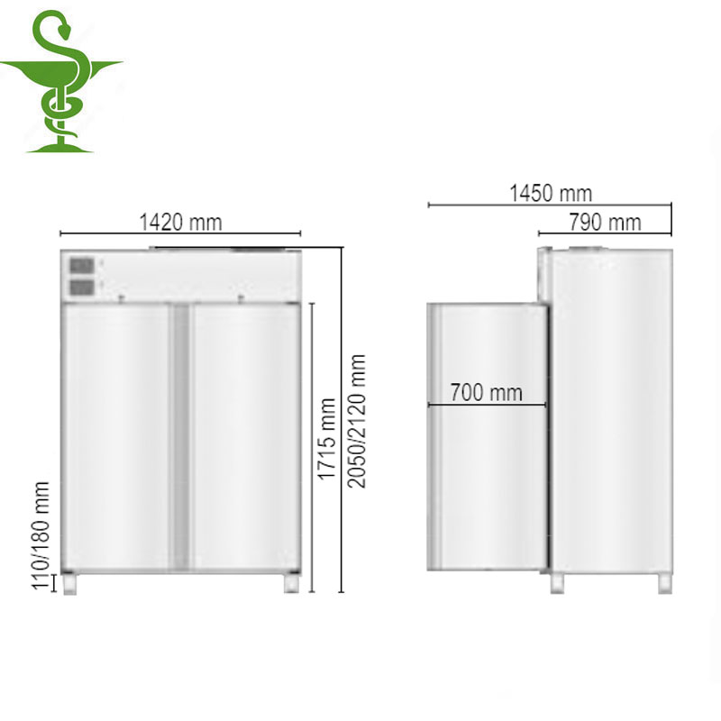 Cette armoire médicale MED DOM à double porte offre une double plage de température, permettant de maintenir des températures de -2°C à +8°C dans chaque compartiment. Le modèle 014 LEONARD COMB est équipé de deux portes et de deux compartiments indépendants, chacun ayant sa propre plage de température. Avec des dimensions de 1420 x 610 x 2050 mm, cette armoire offre un volume interne généreux de 1310 litres et un volume utile total de 866 litres (433 litres pour chaque compartiment). Les dimensions internes des chambres sont de 590 x 610 x 1500 mm pour chaque compartiment. Cette armoire est équipée d'une isolation thermique de 60 mm d'épaisseur pour maintenir une température stable, ainsi que des portes de 50 mm d'épaisseur pour une isolation supplémentaire. Elle est alimentée par une source de courant standard de 220/240V, 1P, 50 Hz. Le gaz de refroidissement peut être choisi entre R452A et R455A en fonction des besoins spécifiques de l'utilisateur.
