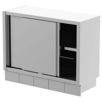 Typology : avec tiroirs Dimensions (mm) : 800 x 400 x 670 En acier inox AISI 304 Avec portes coulissantes et fond fermé
