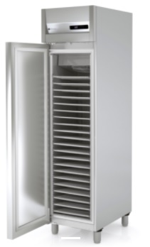 - Capacité pour étagères, bacs ou plateaux 60x40 par glissières inox,
