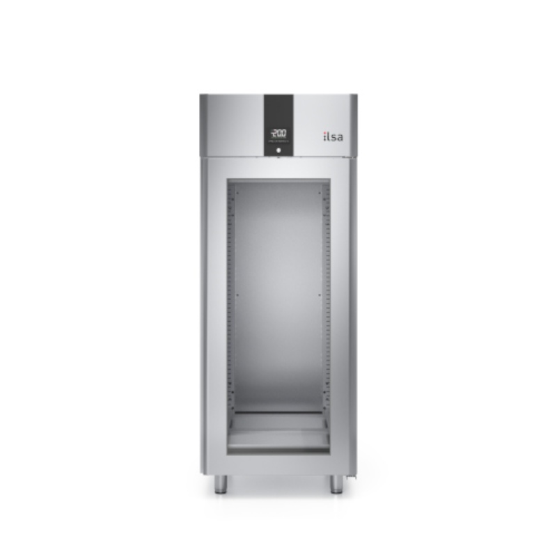 Structure monobloc en acier inox AISI 304 ; finition extérieure satinée scotch-brite ; portes et tableau de bord aux angles extérieurs arrondis ; épaisseur d'isolation de 75 mm pour le corps et de 65 mm pour la porte, avec de la mousse de haute densité (40 kg/m3) sans HFC ; pieds réglables en acier inox h 120/150 mm ; chambre froide avec angles internes arrondis pour un nettoyage et une hygiène parfaits ; dégivrage et évaporation de l'eau de condensation par gaz chauds ; filtre de condenseur amovible en standard ; ventilateurs électroniques à faible consommation d'énergie ; régulateur d'humidité en standard dans la version TN ; crémaillères en acier inox ; 20 jeux de glissières pour plaques 60×40 ou 60×80 en standard ; flux d'air canalisé ; portes à fermeture automatique à 100° ; groupe frigorifique monobloc tropicalisé breveté (classe climatique 5) ; serrure de série ; lumière de série ; poignée ergonomique pleine hauteur et double prise ; commande LCD à haute visibilité ; alimentation électrique monophasée standard 230V/50Hz.