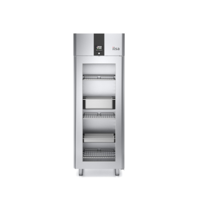 Structure monobloc en acier inox AISI 304 ; finition extérieure satinée scotch-brite ; portes et tableau de bord aux angles extérieurs arrondis ; épaisseur d'isolation de 90 mm pour le corps et de 65 mm pour la porte, avec de la mousse de haute densité (40 kg/m3) sans HFC ; pieds réglables en acier inox h 120/150 mm ; chambre froide avec angles internes arrondis pour un nettoyage et une hygiène parfaits ; dégivrage et évaporation de l'eau de condensation par gaz chauds ; filtre de condenseur amovible en standard ; grilles plastifiées GN 2/1 ; côtés intérieurs moulés pour 24 grilles GN 2/1 au pas de 55 mm; flux d'air arrière canalisé ; portes à fermeture automatique à 100° ; groupe frigorifique monobloc tropicalisé breveté (classe climatique 5) ; serrure de série ; lumière de série ; poignée ergonomique pleine hauteur et double prise ; commande LCD à haute visibilité ; alimentation électrique monophasée standard 230V/50Hz.