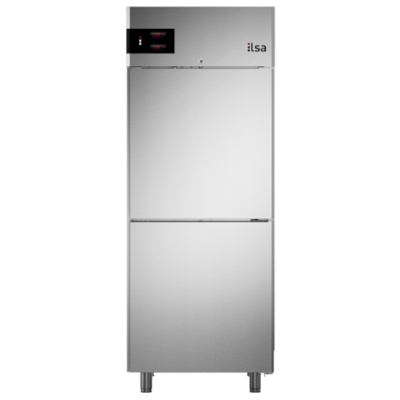 Structure monobloc en acier inox AISI 304 ; finition satinée scotch-brite ; épaisseur d'isolation de 85 mm pour le corps et de 65 mm pour la porte, avec de la mousse de haute densité (40 kg/m3) sans HFC ; pieds réglables h 120/150 mm ; chambre froide avec angles internes arrondis pour un nettoyage et une hygiène parfaits ; dégivrage et évaporation de l'eau de condensation par gaz chauds ; grilles GN 2/1 en rislan ; crémaillères en ABS démontables sans outils ; flux d'air latéral ; portes à fermeture automatique à 100° ; groupe frigorifique monobloc tropicalisé breveté (en classe climatique 5) ; serrure de série ; alimentation électrique 230V/50Hz monophasée de série.