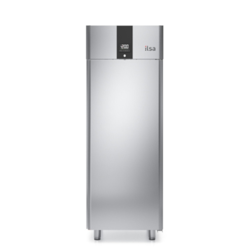 Structure monobloc en acier inox AISI 304 ; finition extérieure satinée scotch-brite ; portes et tableau de bord aux angles extérieurs arrondis ; épaisseur d'isolation de 90 mm pour le corps et de 65 mm pour la porte, avec de la mousse de haute densité (40 kg/m3) sans HFC ; pieds réglables en acier inox h 120/150 mm ; chambre froide avec angles internes arrondis pour un nettoyage et une hygiène parfaits ; dégivrage et évaporation de l'eau de condensation par gaz chauds ; filtre de condenseur amovible en standard ; grilles plastifiées GN 2/1 ; côtés intérieurs moulés pour 24 grilles GN 2/1 au pas de 55 mm; flux d'air arrière canalisé ; portes à fermeture automatique à 100° ; groupe frigorifique monobloc tropicalisé breveté (classe climatique 5) ; serrure de série ; lumière de série ; poignée ergonomique pleine hauteur et double prise ; commande LCD à haute visibilité ; alimentation électrique monophasée standard 230V/50Hz.