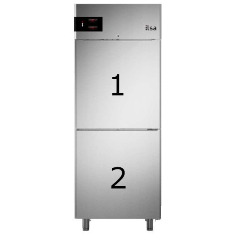 Structure monobloc en acier inox AISI 304 ; finition satinée scotch-brite ; épaisseur d'isolation de 85 mm pour le corps et de 65 mm pour la porte, avec de la mousse de haute densité (40 kg/m3) sans HFC ; pieds réglables h 120/150 mm ; chambre froide avec angles internes arrondis pour un nettoyage et une hygiène parfaits ; dégivrage et évaporation de l'eau de condensation par gaz chauds ; grilles GN 2/1 en rislan ; crémaillères en ABS démontables sans outils ; flux d'air latéral ; portes à fermeture automatique à 100° ; groupe frigorifique monobloc tropicalisé breveté (en classe climatique 5) ; serrure de série ; alimentation électrique 230V/50Hz monophasée de série.