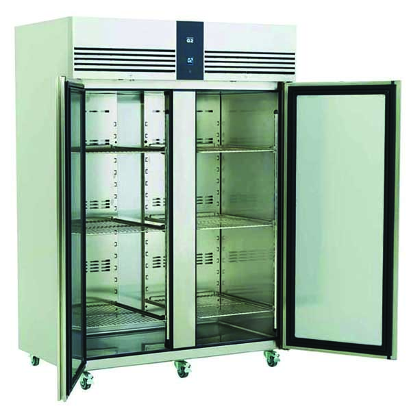 Isolation mousse de polyuréthane haute densité (43 Kg/M3) épaisseur accrue 70 mm 0%CFC/0%HCFC. Circuit frigorifique entièrement repensé et 100% accessible depuis l’extérieur. Nouvelles ruptures thermiques. Contreporte encastrée pour éviter les pertes de froid à travers le joint. Construction inox AISI 304. Angles intérieurs arrondis Ø 15 mm. Aménagements intérieurs démontables sans outil. Gaine de diffusion d’air sur toute la largeur. Joint de porte fongicide dé- montable sans outil. Volume intérieur 100% utile. Nouvelle poignée de porte non débordante facile à nettoyer. Charnières de porte renforcées avec rappel de fermeture. Coupe-ventilation électromagnétique à l’ouverture des portes. 4 roulettes à frein en série (pieds en option). Porte équipée d’une serrure.