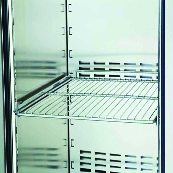 Isolation mousse de polyuréthane haute densité (43 Kg/M3) épaisseur accrue 70 mm 0%CFC/0%HCFC. Circuit frigorifique entièrement repensé et 100% accessible depuis l’extérieur. Nouvelles ruptures thermiques. Contreporte encastrée pour éviter les pertes de froid à travers le joint. Construction inox AISI 304. Angles intérieurs arrondis Ø 15 mm. Aménagements intérieurs démontables sans outil. Gaine de diffusion d’air sur toute la largeur. Joint de porte fongicide dé- montable sans outil. Volume intérieur 100% utile. Nouvelle poignée de porte non débordante facile à nettoyer. Charnières de porte renforcées avec rappel de fermeture. Coupe-ventilation électromagnétique à l’ouverture des portes. 4 roulettes à frein en série (pieds en option). Porte équipée d’une serrure.