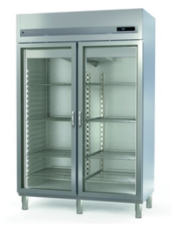Armoire frigorifique professionnelle avec 2 portes vitrées (double vitrage) et ses cotés emboutis en inox pour plus de robustesse et un parfait respect de l'hygiène.