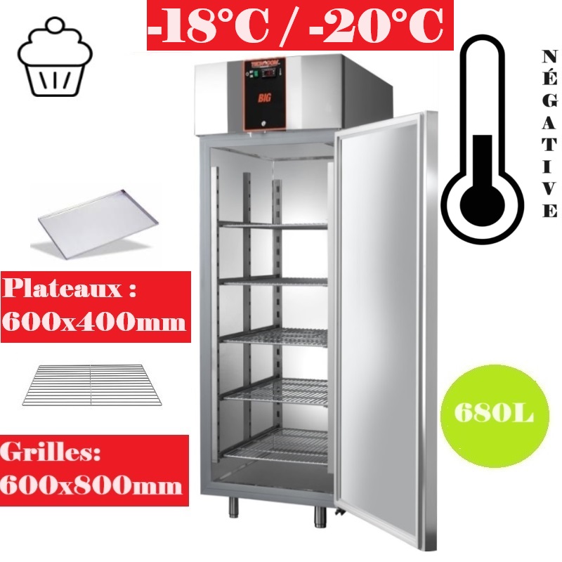 L'armoire réfrigérée négative de la gamme BIG AF10BIGBTPS de Tecnodom est spécialement conçue pour répondre aux besoins de stockage dans le domaine de la pâtisserie, en maintenant les températures entre -18°C et -22°C pour assurer la fraîcheur des produits. Voici ses caractéristiques principales :