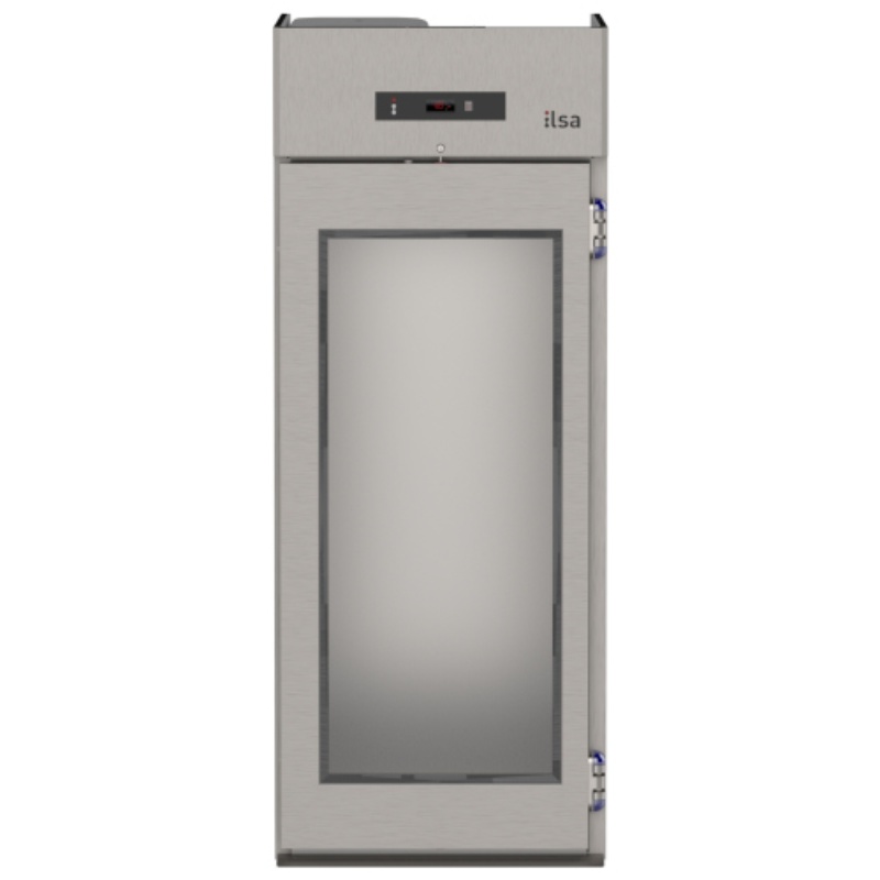 Structure monocoque en acier inox AISI 304 ; finition extérieure satinée scotch-brite ; épaisseur d'isolation de 80 mm, avec mousse haute densité sans HFC (40 kg/m3) ; dégivrage par gaz chauds et évaporation de l'eau de condensation ; sol en acier inox fourni de série dans tous les modèles ; disponible avec portes pleines ou vitrées ; éclairage intérieur de série dans les modèles avec portes vitrées ; version passante disponible ; tous les modèles permettent l'insertion de chariots h max. 183cm ; le modèle à une porte permet l'insertion d'un chariot GN 2/1 ou d'un chariot 60×80 ; le modèle à deux portes permet l'insertion de deux chariots GN 2/1 ou de deux chariots 60×80 ; optimisation des flux d'air internes et externes ; fermeture automatique des portes à 100° ; groupe frigorifique monobloc tropicalisé breveté (en classe climatique 5) ; serrure de série ; alimentation électrique monophasée 230V/50Hz.