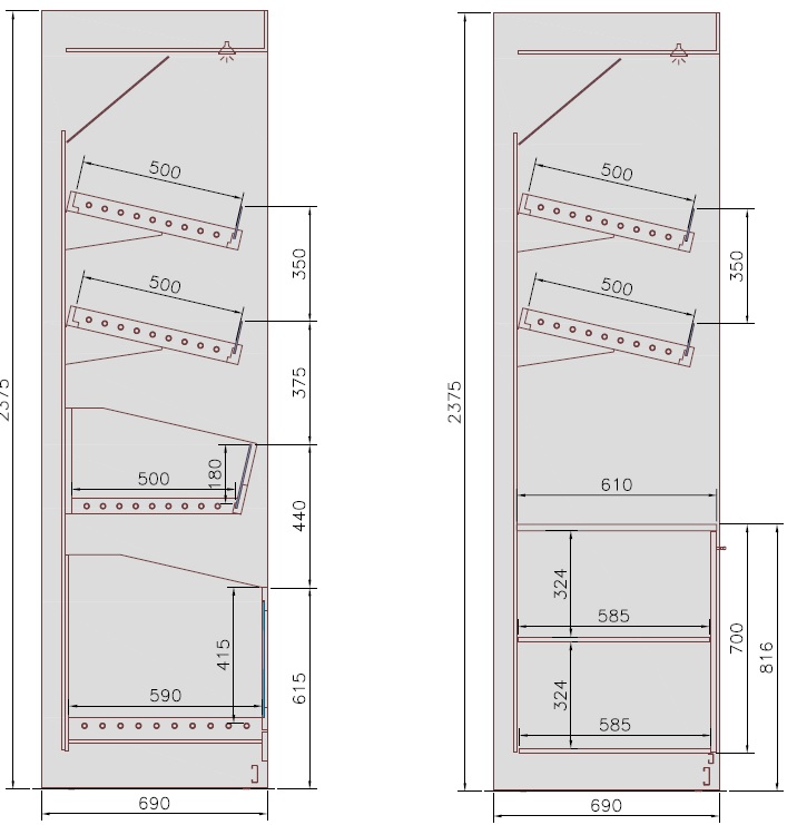 Grâce à 1 modulation de 1000 mm et à un large éventail d'options, y compris des étagères, des corbeilles et des armoires avec des portes, vous pouvez créer des solutions différentes, pour répondre aux besoins structurels et conceptuels de différents domaines d'application.