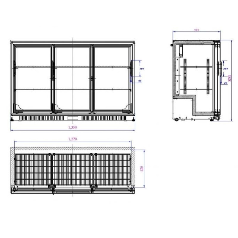 Arrière Bar Réfrigéré Noir 3 Portes Coulissantes - Ref 7527.0050 Combisteel