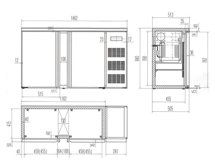 Ce réfrigérateur présente des dimensions compactes mais spacieuses : avec des dimensions externes de 1462 x 513 x 860 mm et une capacité nette de 277 litres, il vous offre un volume généreux pour ranger vos boissons et produits alimentaires. L'intérieur est conçu en acier inoxydable de haute qualité, garantissant une grande résistance à l'usure tout en facilitant le nettoyage quotidien. Il est équipé de 4 tablettes en acier inoxydable SS304, ajustables selon vos besoins pour optimiser l’espace.