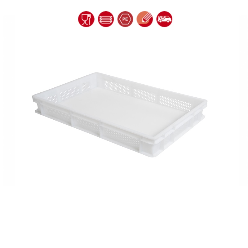 - Fond surélevé pour éviter tout contact avec d'autres caisses empilées
