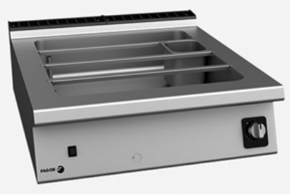 - Cuves qui permettent différentes dispositions de récipients Gastronorm, de 150 mm de profondeur modulables : · Demi-module : GN-1/1+1/3, avec 22 litres de capacité.