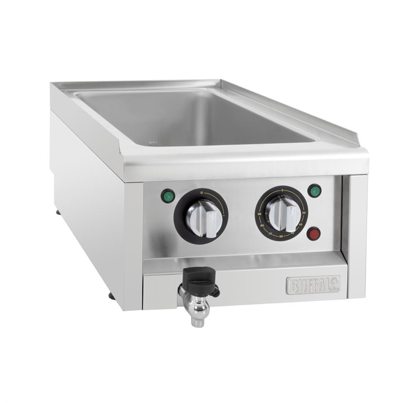 Faisant partie de la série Buffalo 600, ce cuiseur à pâtes est conçu pour s'adapter aux autres appareils de la série 600, vous offrant ainsi une ligne de cuisson homogène, quelle que soit la taille de votre cuisine. Ce bain-marie peut être utilisé comme appareil de comptoir ou posé sur un soubassement de la Série 600 d'une largeur de 400mm.