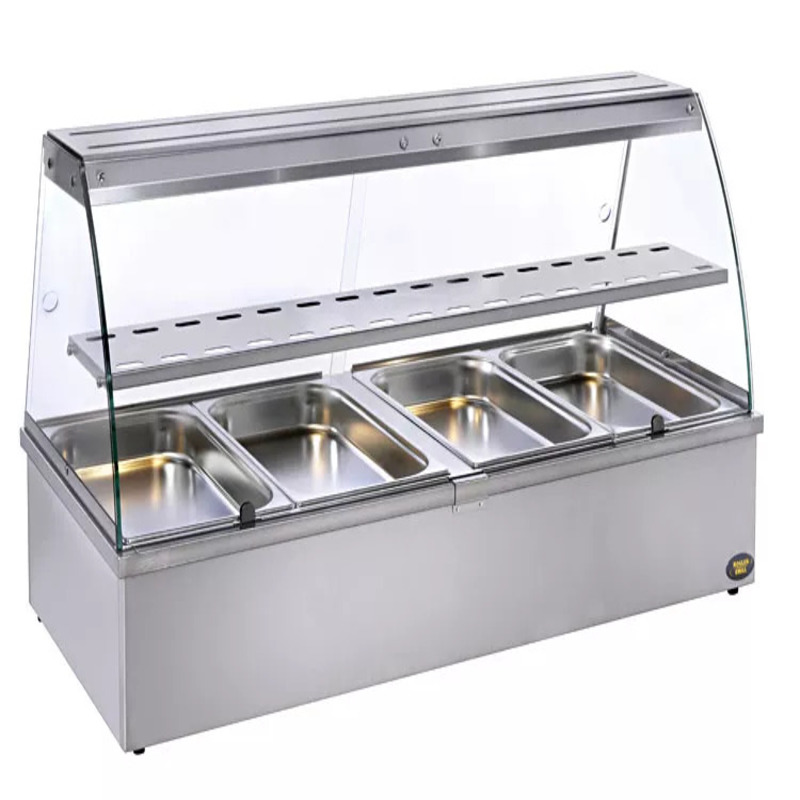 La vitrine chauffante avec bain-marie BMV 4 équipe essentiellement les collectivités, convenience stores et les buffets.
