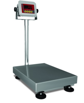 Plate-forme de pesage industriel tout inox AISI304 destinée à être utilisée en milieu humide ou poussiéreux, adaptée au secteur agro-alimentaire.