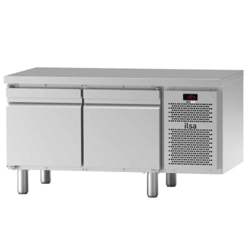 Les nouvelles base réfrigérées NEOS sont construites avec une structure monocoque en acier inox AISI 304. Finition extérieure satinée scotch-brite ; épaisseur d'isolation de 60 mm pour le corps et de 50 mm pour les portes avec mousse haute densité (40 kg/mc) ; dos extérieur en tôle galvanisée ; pieds en acier inox réglables en hauteur h. 140/230 mm ; chambre froide avec coins arrondis pour un meilleur nettoyage intérieur ; portes à fermeture automatique avec arrêt à 95° ; joints magnétiques des portes et des tiroirs facilement échangeables ; dégivrage au gaz chaud et évaporation automatique de l'eau de condensation ; poignées ergonomiques ; alimentation électrique standard 230V/50Hz ; gaz réfrigérant écologique R290 ; charnières supérieures et inférieures des portes fixées à l'avant du corps (interchangeables sans devoir démonter le plan de travail) ; portes réversibles.