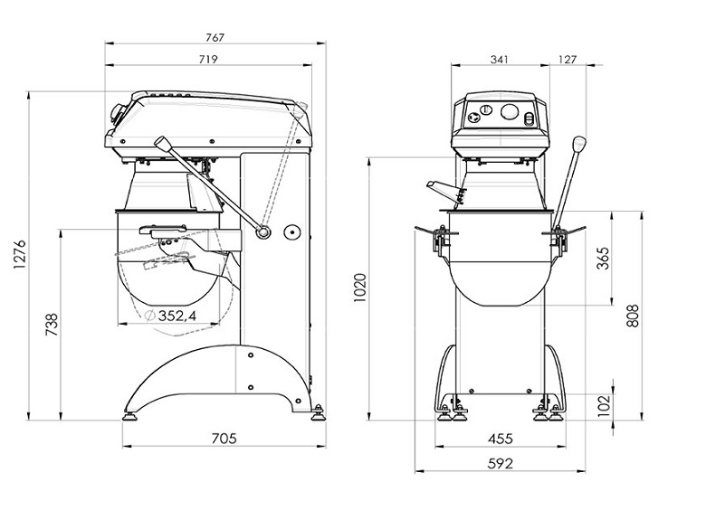 -Mélangeur planétaire de 30 l, idéale pour pates et pour le montage de blanc d’œuf, crème, gâteaux éponge, etc. Réglage de la vitesse par inverseur