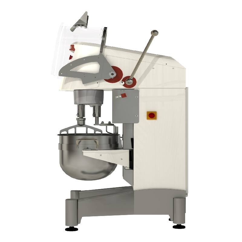 L'ouverture du capot provoque l'arrêt automatique du batteur mélangeur, assurant une sécurité maximale pour l'utilisateur. Le capot anti-projection de farine protège l'opérateur et maintient un environnement de travail propre.