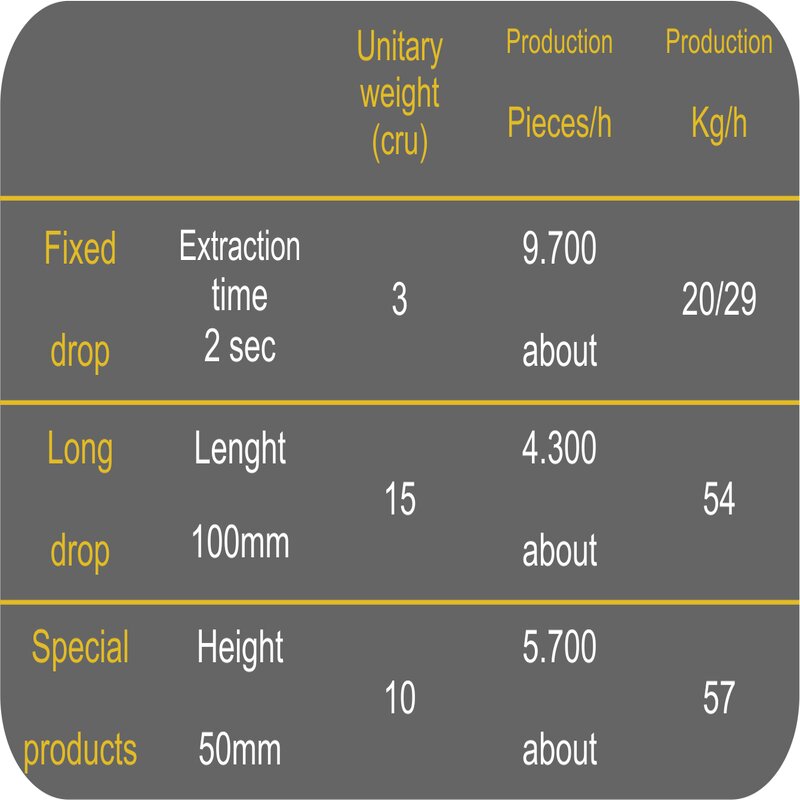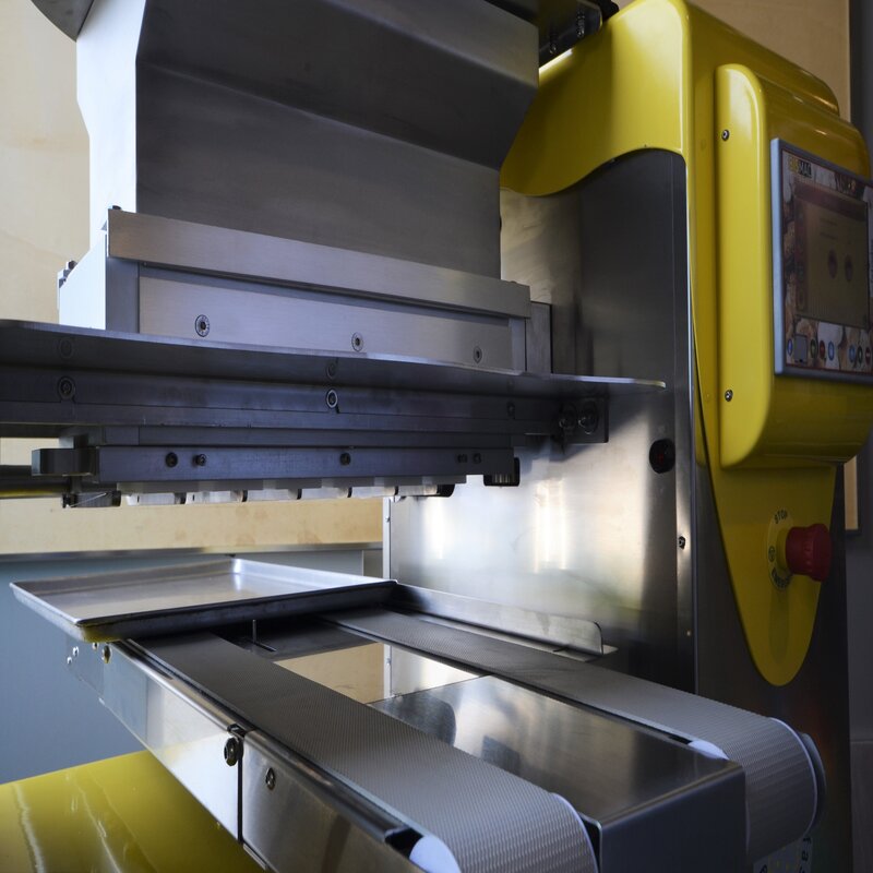 - Son écran tactile de 4 pouces vous permet d'entrer les paramètres nécessaires pour surveiller et enregistrer toutes vos productions, accessibles en sélectionnant la recette de votre choix. La machine se mettra alors automatiquement au travail. De plus, il est possible de modifier les paramètres en cours de processus, sans affecter la configuration d'origine de la recette. Cette flexibilité est conçue pour faire face aux variations de densité de la pâte, permettant ainsi d'ajuster la vitesse de rotation des douilles, des rouleaux ou des bandes transporteuses en conséquence.