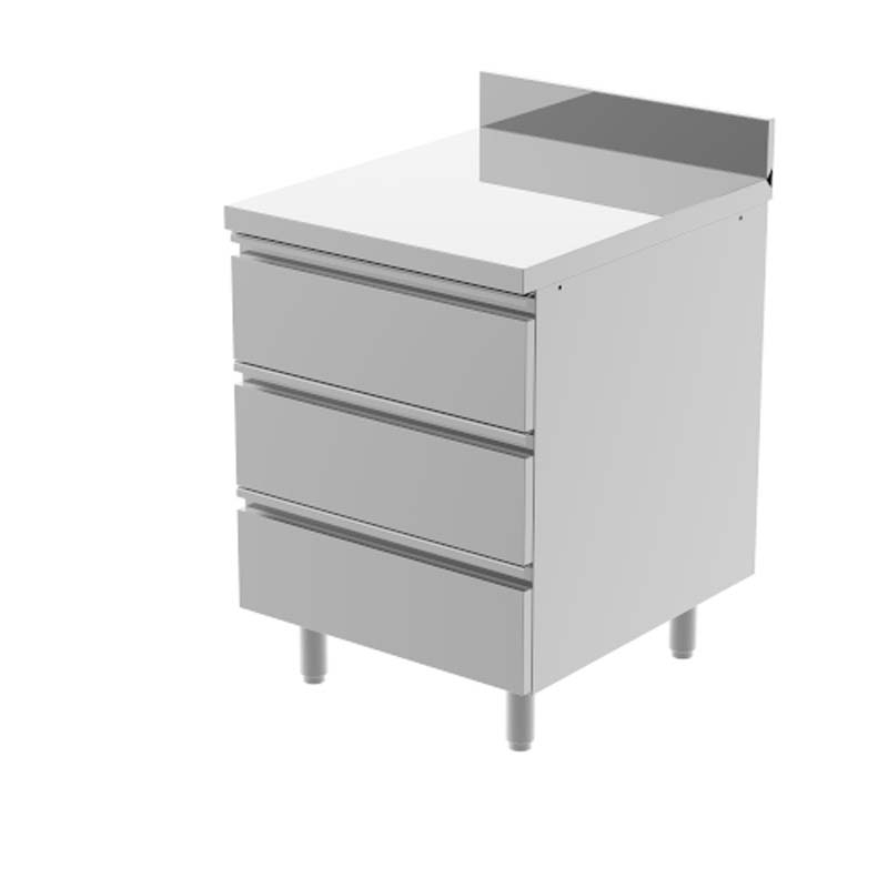 La gamme modulaire s’adresse à ceux qui ont besoin de construire un laboratoire ou d’aménager une cuisine en fonction de leurs besoins. Sous les plans de travail d’une longueur de 40 à 380 cm, il est possible d’insérer des éléments à tiroirs (2-3-4 tiroirs, supports à pain, supports à bouteilles), des armoires (ouvertes et à portes battantes, également des armoires d’angle), des supports à plaques, des trémies (avec leurs guides respectifs), des éléments d’armoire (ouverts, à portes coulissantes et traversantes avec des dimensions de 100 à 200 cm). La gamme d’unités modulaires est conçue pour permettre l’insertion d’éléments réfrigérés et de refroidisseurs/congélateurs rapides.