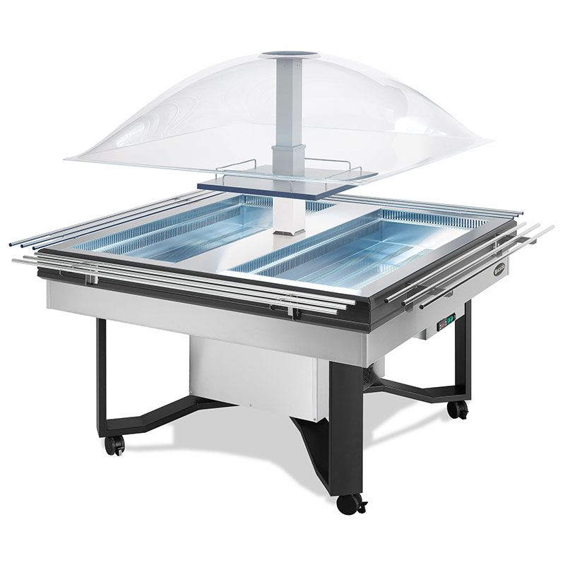 Buffet réfrigéré central inox avec étagères SCAIOLA