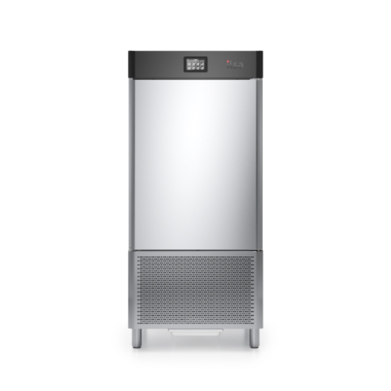 Structure en acier inox AISI 304 ; finition extérieure en scotch-brite satiné ; épaisseur d'isolation de 60 mm, avec mousse à haute densité (40 kg/mc) sans HFC ; pieds réglables en acier inox ; chambre froide avec angles internes arrondis pour une propreté et une hygiène parfaites ; grilles en fil métallique facilement amovibles pour le logement des plaques GN 1/1 ou 60×40 ; circulation frontale de l'air à l'intérieur du compartiment technique, pour une répartition uniforme des flux ; portes réversibles à fermeture automatique à ressort, équipées d'un joint magnétique amovible ; micro-porte pour arrêter le ventilateur lorsque la porte est ouverte ; sonde à cœur en standard, également disponible en version chauffée ; alimentation électrique triphasée 400V/50Hz..