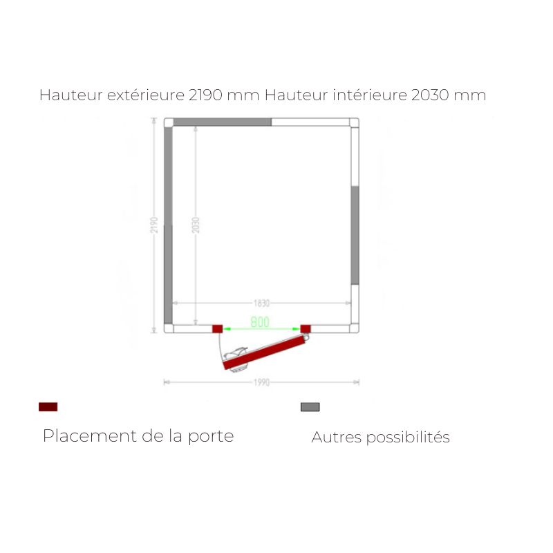 - Dimensions internes 2030x1830xh2030 mm.