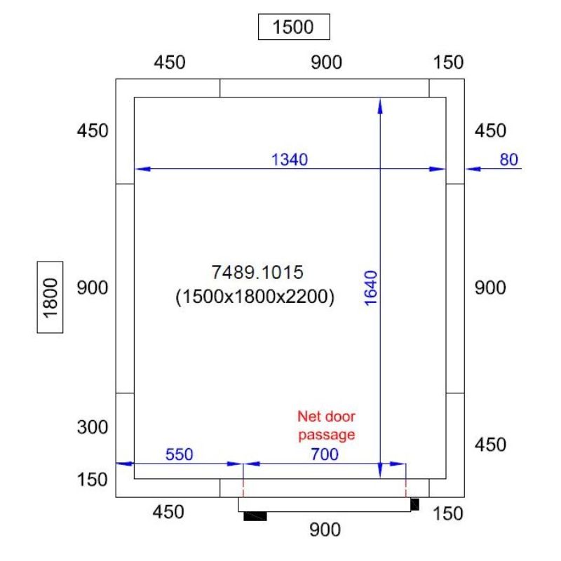 Cette chambre froide se distingue par ses dimensions généreuses : 1500 mm de largeur, 1800 mm de profondeur et 2200 mm de hauteur, permettant un volume intérieur de 4,5 m³. Son design robuste est conçu pour offrir une isolation optimale grâce à une épaisseur de paroi de 80 mm, ce qui garantit une efficacité énergétique accrue et une performance de refroidissement stable. La porte réversible avec charnière à droite (ou à gauche selon vos besoins) est pratique et facile à manipuler grâce à sa largeur de 700 mm. De plus, elle est équipée d'un système de verrouillage pour garantir la sécurité de vos produits stockés.