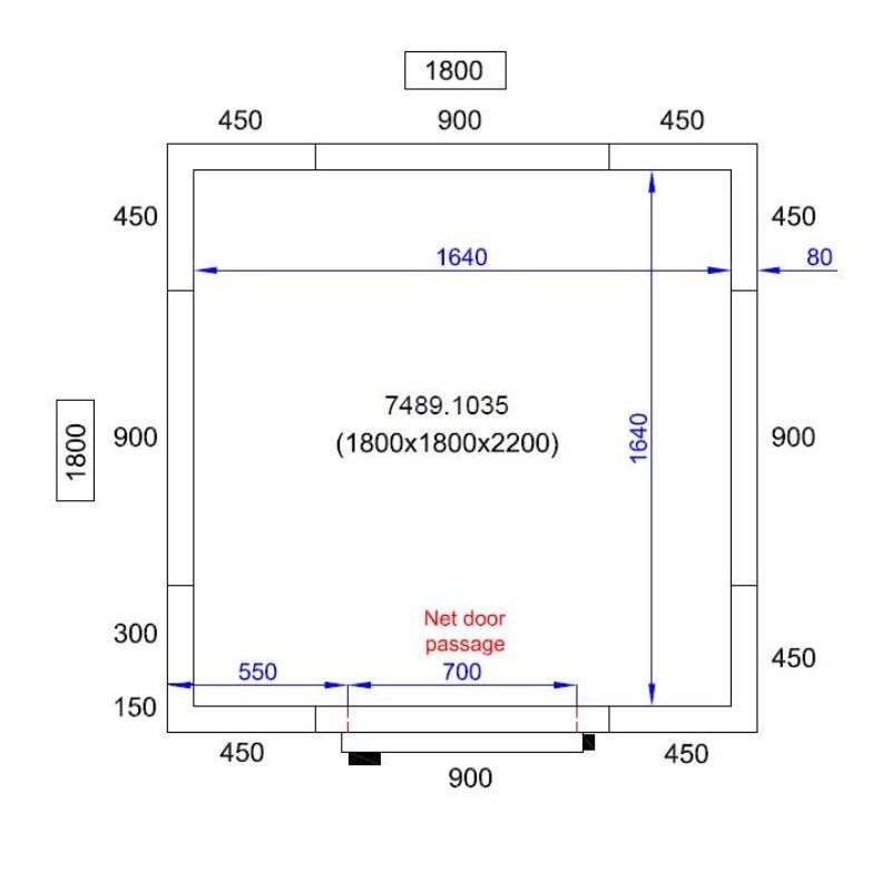 - Dimensions intérieures : 1640 x 1640 x 2040 mm