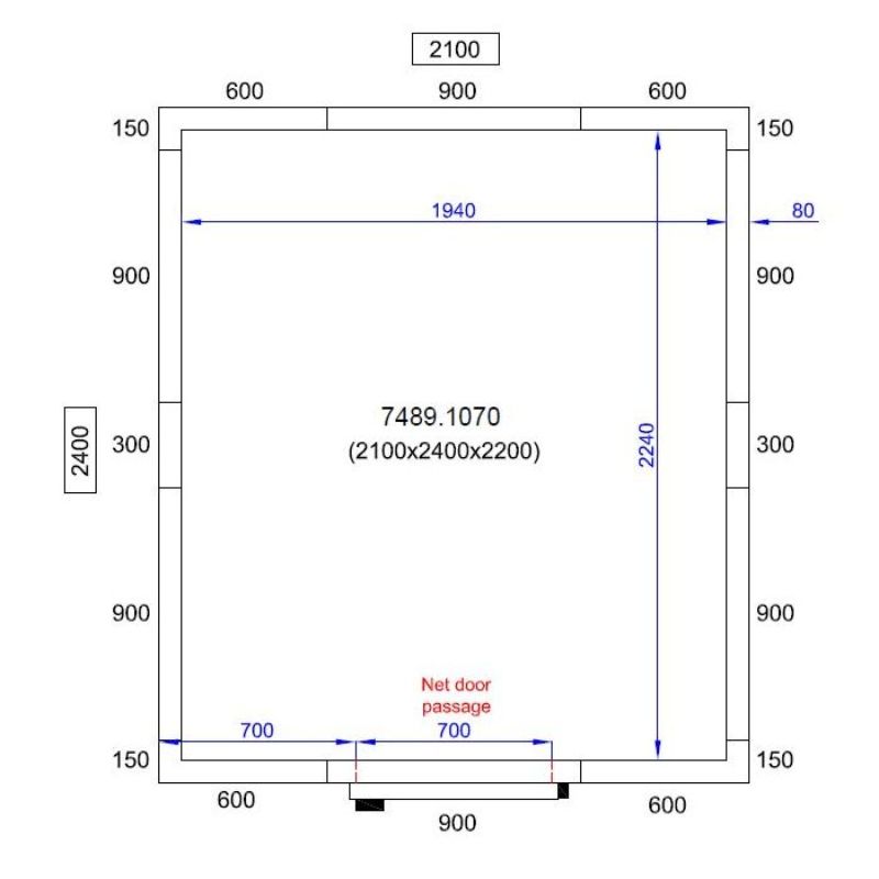 - Dimensions intérieures (L x P x H) : 1940 x 2240 x 2040 mm
