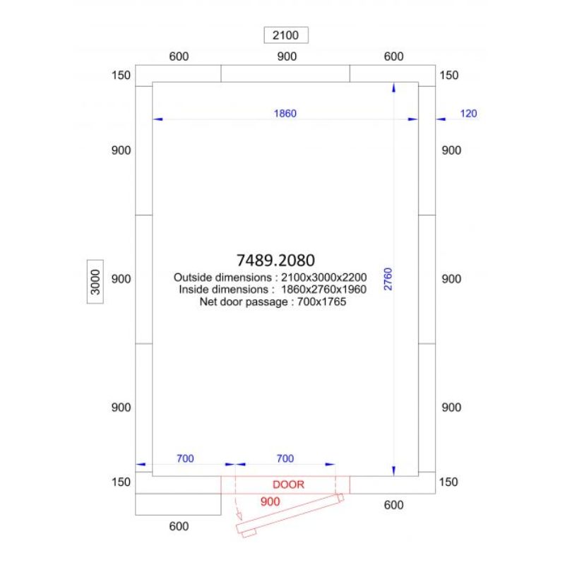 Cette chambre froide bénéficie d’une construction solide et d’une isolation thermique optimale. Avec des dimensions extérieures de 2100x3000x2200 mm et une capacité intérieure de 10,1 m³, elle offre un espace généreux pour stocker vos produits dans des conditions idéales. L'épaisseur d'isolation de 120 mm permet de maintenir une température stable, qu'elle soit positive ou négative, tout en réduisant la consommation énergétique. Sa porte réversible avec une articulation à droite garantit une flexibilité maximale, permettant une installation et une utilisation adaptées à votre espace.