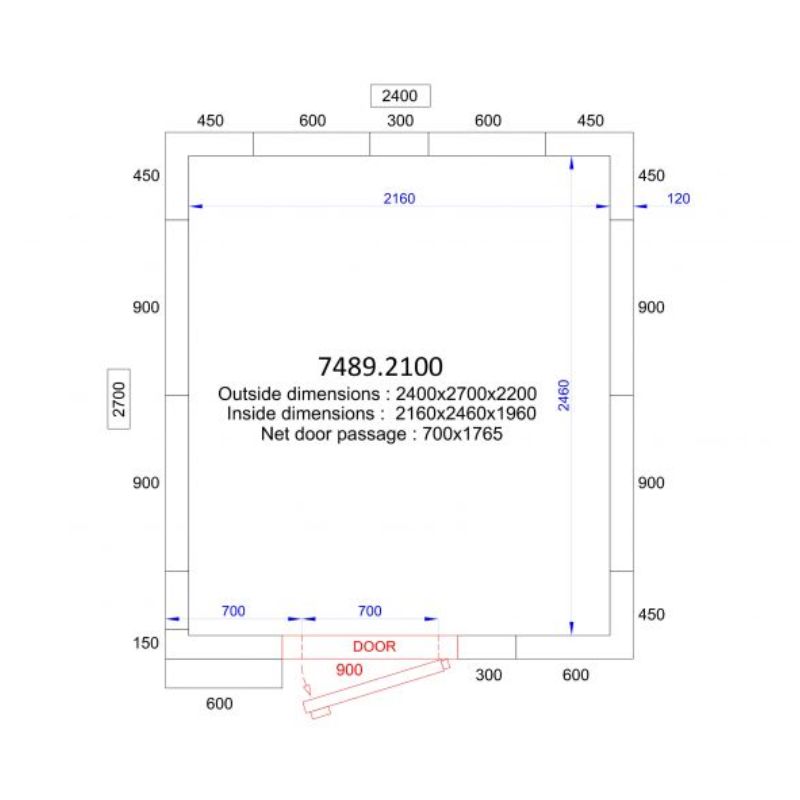La Chambre Froide Combisteel se distingue par ses dimensions généreuses (2400 x 2700 x 2200 mm) qui offrent un espace intérieur de 10,4 m³, permettant de stocker une grande quantité de produits. Les dimensions intérieures sont de 2160 x 2460 x 1960 mm, garantissant un agencement flexible pour vos besoins. La porte réversible (700 mm de largeur) est équipée d'un système de verrouillage sécurisé et d'une charnière à droite, assurant une utilisation pratique et sûre. Son épaisseur d'isolation de 120 mm assure une excellente efficacité énergétique, maintenant des températures constantes et réduisant vos coûts énergétiques.